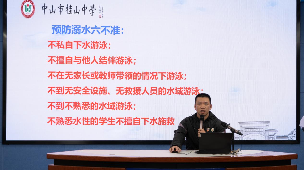接著,德育處陳建科副主任對(duì)五一假期安全教育也進(jìn)行了提醒,希望假期同學(xué)們要牢記“防詐騙、防溺水、交通安全、網(wǎng)絡(luò)安全、政治安全、消防安全、遠(yuǎn)離毒品”七點(diǎn)安全提醒,特別謹(jǐn)記要做到預(yù)防溺水六不準(zhǔn),做到不私自下水游泳;不擅自與他人結(jié)伴游泳;不在無家長或教師帶領(lǐng)的情況下游泳;不到無安全設(shè)施、無救援人員的水域游泳;不到不熟悉的水域游泳;不熟悉水性的學(xué)生不擅自下水施救。希望全體同學(xué)把珍愛生命、安全第一銘記在心,平平安安過五一,快快樂樂返校來。