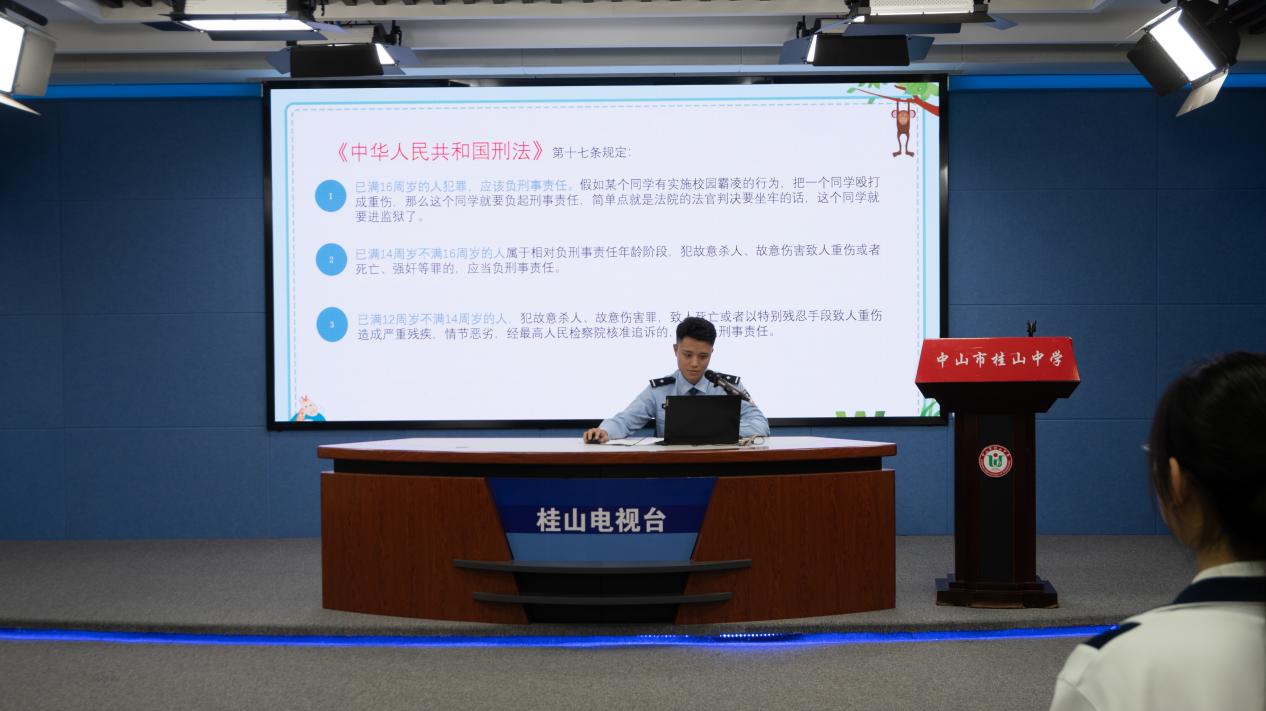 為提高學(xué)生的校園安全意識(shí)和自我保護(hù)意識(shí),4月26日下午,中山市桂山中學(xué)面向全體在校學(xué)生舉行了預(yù)防校園欺凌暨五一假期安全教育專題講座,活動(dòng)邀請(qǐng)了三鄉(xiāng)公安分局谷都派出所警官藍(lán)凌鋒,以校園電視臺(tái)直播形式進(jìn)行。
