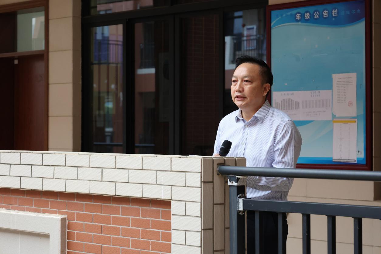 會(huì)議伊始,學(xué)校黨委書(shū)記、校長(zhǎng)董再明對(duì)家長(zhǎng)們的到來(lái)表示熱烈的歡迎。董校長(zhǎng)通過(guò)對(duì)各個(gè)建筑名稱的由來(lái)介紹了學(xué)校的辦學(xué)理念以及育人目標(biāo)。他表示,學(xué)校將五育并舉,促進(jìn)學(xué)生的卓越發(fā)展,也希望家長(zhǎng)能成為家校共育的合作者、支持者、踐行者,與學(xué)校、年級(jí)一起為學(xué)生共繪美好未來(lái)。
