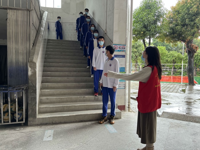 上午10點,中山市古鎮(zhèn)高級中學的核酸檢測籌備工作緊張有序地進行,學校從場地規(guī)劃、路線設置、年級調度、信息采集、志愿服務等各方面進行了精準部署,到人到崗到環(huán)節(jié)到節(jié)點,全力保證核酸檢測的效率和覆蓋率。