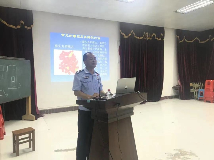 隨后,林警官通過一系列圖片,向同學們展示了常見的毒品及其辨識方法。其中,傳統(tǒng)毒品包括鴉片、海洛因、罌粟殼、大麻、病毒、搖頭丸和麻古、阿拉伯茶、干花和紅冰;還有一些常見的新型毒品包括奶茶、浴鹽、開心水、止咳水、跳跳糖、神仙水和郵票毒品。林警官通過對這些毒品的成分、外觀和吸食后果進行介紹,讓同學們直觀地學會辨識毒品、更深刻地認識到毒品的危害性、成癮性和非法性。