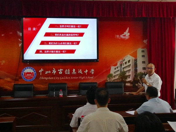 為部署新學(xué)期各項(xiàng)工作,8月9日上午,中山市古鎮(zhèn)高級中學(xué)在綜合室召開了高三年級全體教師大會,王學(xué)成校長、譚杰玉副校長、趙朝賢副校長、各處室主管領(lǐng)導(dǎo)和全體高三教師出席了本次會議,高三年級劉雄萬副主任主持會議。