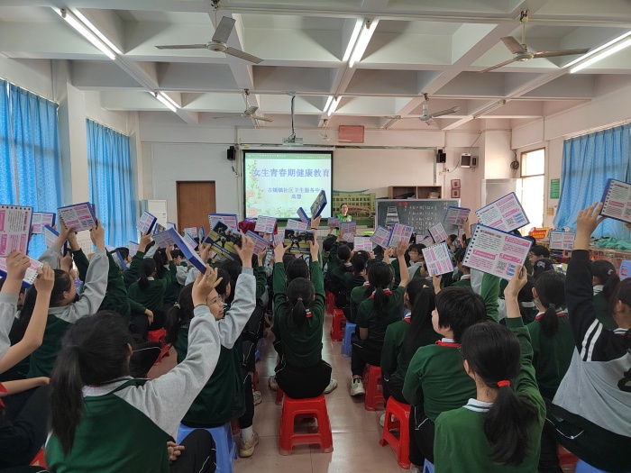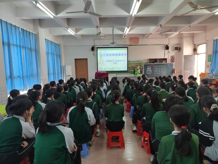 在講課過程中,古鎮(zhèn)鎮(zhèn)社區(qū)衛(wèi)生服務中心高慧醫(yī)生結(jié)合直觀而豐富的圖文課件,向參會女生們細致、形象的介紹了進入青春期后女生身體發(fā)育和心理發(fā)展特點,以及所要面臨的問題,并且引導女生們該如何對待、如何處理的方法和方式,從心理和生理兩方面幫助女生正確面對進入青春期后生理和心理的變化。