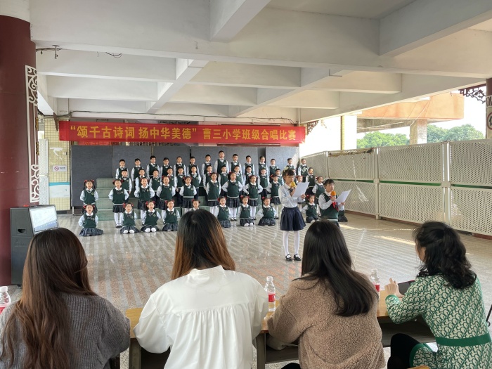 本次比賽,激發(fā)了同學(xué)們努力學(xué)習(xí)、弘揚(yáng)中國(guó)傳統(tǒng)文化的熱情,豐富了學(xué)校師生精神文化生活,充分展示了曹三小學(xué)學(xué)生的精神風(fēng)貌和風(fēng)采。優(yōu)美的歌聲給大家留下的不僅是動(dòng)人的旋律,更是對(duì)美好愿望的追求!在這個(gè)充滿(mǎn)希望的春天里,愿孩子們乘著歌聲的翅膀,不畏前路,展翅飛翔!
