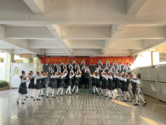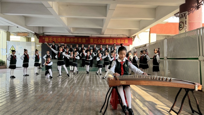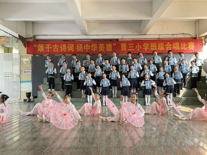 為弘揚(yáng)中國(guó)傳統(tǒng)文化,豐富校園文化生活,增強(qiáng)班級(jí)凝聚力,激發(fā)學(xué)生對(duì)藝術(shù)的熱愛(ài),體驗(yàn)古詩(shī)詞和音樂(lè)的融合之美,2月24日,曹三小學(xué)舉行了以“頌千古詩(shī)詞 揚(yáng)中華美德”為主題的班級(jí)合唱比賽。