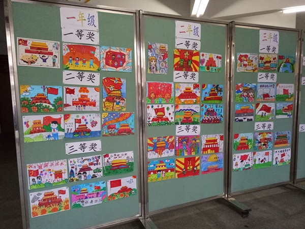在全體班主任的督促指導(dǎo)下,學(xué)生都交上滿意的作品。繪畫作品主題突出,色彩搭配和諧悅目,充滿喜慶的元素。特別是低年級(jí)的小朋友,他們的親子作品更是經(jīng)過爸爸媽媽的精心指導(dǎo),線條流暢,活潑靈動(dòng),讓人嘖嘖稱贊。攝影作品就更吸引大家的眼球了!別看只是小學(xué)生的攝影,祖國大好河山、風(fēng)景名勝,繁華城市、美好家園,紅色基地、緬懷先烈……站在一個(gè)個(gè)展板前,能讓人身臨其境,駐足良久。