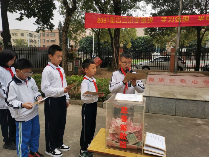 為積極響應(yīng)上級(jí)部門“慈善萬人行”活動(dòng)的倡議,弘揚(yáng)人道博愛精神,倡導(dǎo)中華美德,培養(yǎng)學(xué)生樂于助人的良好品質(zhì),1月10日上午,古三小學(xué)開展了“慈善萬人行”愛心捐款活動(dòng)。