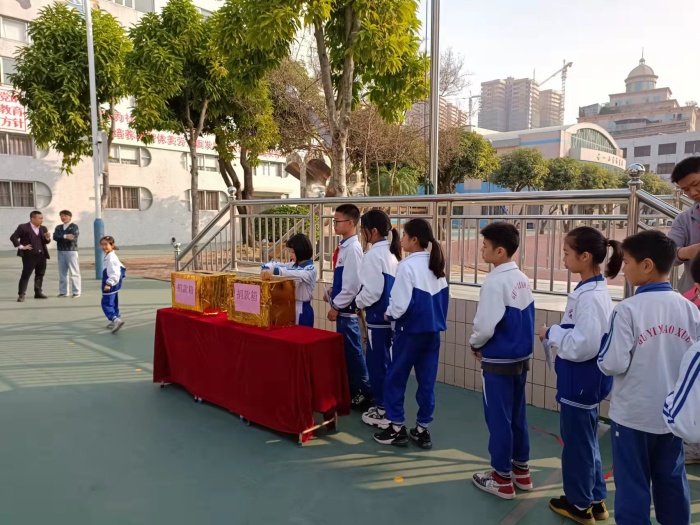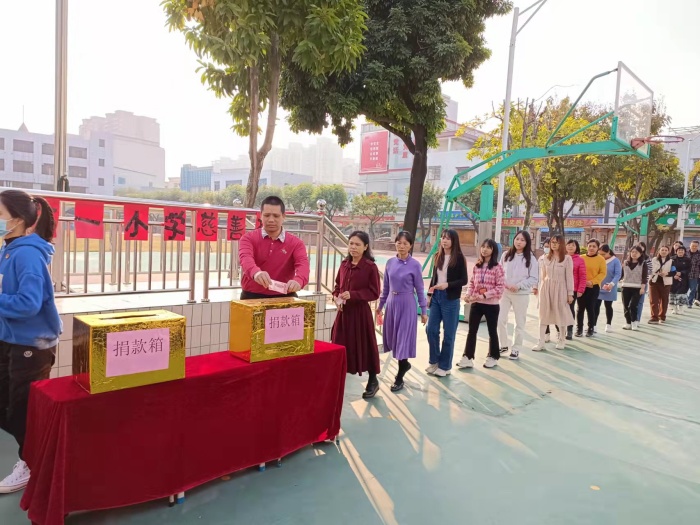 1月7日上午9點,古一小學全體師生齊聚操場舉行2022年慈善捐款儀式。首先,德育副主任王易蓉宣讀慈善萬人行捐款倡議書。接著,教師隊伍按順序依次上臺捐款。隨后在班主任的帶領下,各班學生代表依次上臺,把手中的善款放入捐款箱內(nèi),伴隨著悠揚的旋律,整個捐款活動積極而熱烈,點滴愛心匯聚成愛的海洋。