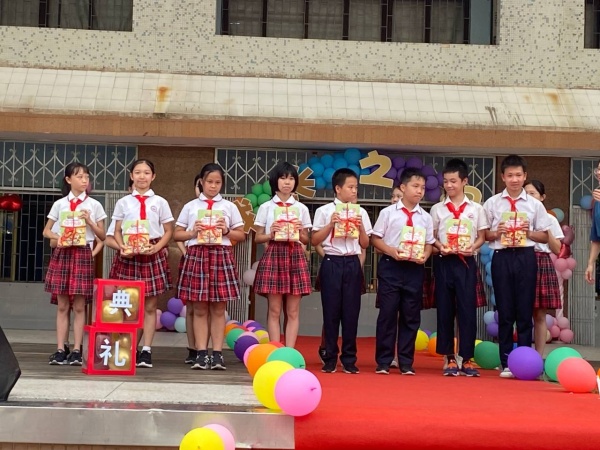 四點半,六年級的畢業(yè)典禮在和諧、感恩的氛圍中拉開帷幕。在《少年》歌曲的環(huán)復中,老師帶頭,六年級的家長牽著自己孩子的手走過成長之門,并留下影像。然后,全校師生及到場家長一同參與莊重的升旗儀式,大聲合唱《國歌》;兩名優(yōu)秀畢業(yè)生代表作國旗下講話,他們回顧了難忘的六年小學生活,也給了師弟師妹們一些衷心的建議。隨后,唐慧玉副校長作畢業(yè)致辭,祝賀孩子們順利畢業(yè),希望孩子們帶著自己的夢想,向未來繼續(xù)出發(fā)。緊接著,唐慧玉校長代表古一小學向畢業(yè)生捐贈禮物——書籍《優(yōu)秀小學生要知道的50個禮儀》。隨后家長代表講話,祝愿孩子們快樂成長。最后,學生代表向校長及畢業(yè)班、退休老師贈送鮮花,以及西藏林芝向工布江達鄉(xiāng)小學捐贈“友誼燈”,傳遞光芒,點亮伙伴,增進情誼。