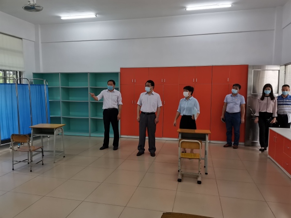 鎮(zhèn)專班領(lǐng)導(dǎo)、鎮(zhèn)黨委書記匡志同志帶隊(duì)到鎮(zhèn)南小學(xué)檢查復(fù)學(xué)準(zhǔn)備工作,鎮(zhèn)黨委委員區(qū)美定同志、鎮(zhèn)專班成員鎮(zhèn)教育事務(wù)指導(dǎo)中心主任鄧秋元同志、社區(qū)衛(wèi)生服務(wù)中心主任黃時美同志檢查了學(xué)校健康觀察室、校醫(yī)室、學(xué)校防控物資,并詳細(xì)了解學(xué)校的心理健康工作開展情況。張洪娣校長向?qū)0嘟M匯報了學(xué)校的防控措施,防控物資配置情況,完全能滿足學(xué)校的返校復(fù)學(xué)需要。學(xué)校按照《中山市中小學(xué)疫情防控下返校復(fù)學(xué)心理建設(shè)指引》的通知,制定了《古鎮(zhèn)鎮(zhèn)鎮(zhèn)南小學(xué)學(xué)校疫情防控心理危機(jī)干預(yù)方案?》和《古鎮(zhèn)鎮(zhèn)鎮(zhèn)南小學(xué)疫情防控下返校心理建設(shè)方案》,完成了全面的普查,分類明確跟蹤責(zé)任人,進(jìn)行分類跟進(jìn),確保返校復(fù)學(xué)順利有序。