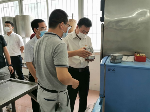 蕭華海副書記一行從臨時(shí)隔離室、師生洗手池、課室、餐廳、食堂加工區(qū)、保健室、隔離室、物資儲(chǔ)備室等地方對(duì)學(xué)校疫情防控工作和復(fù)學(xué)準(zhǔn)備工作進(jìn)行現(xiàn)場(chǎng)查看,并提出進(jìn)一步完善的意見(jiàn)和建議。蕭華海副書記在課室里查看了班級(jí)布置情況,了解學(xué)生用餐事宜;在食堂加工區(qū)檢查了留樣食物,強(qiáng)調(diào)食材要新鮮、農(nóng)產(chǎn)品的檢測(cè)要做實(shí)做細(xì);在檢查保健室、隔離室時(shí)聽(tīng)取了華文學(xué)校謝春生校長(zhǎng)關(guān)于學(xué)校應(yīng)急處置流程的匯報(bào),要求學(xué)校早發(fā)現(xiàn)、早隔離、早處理。