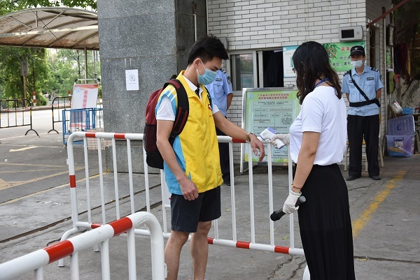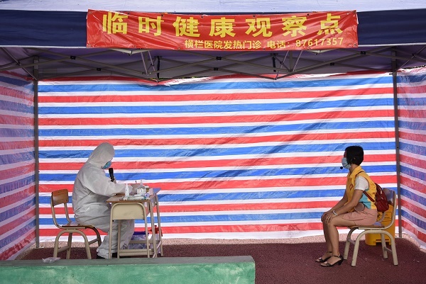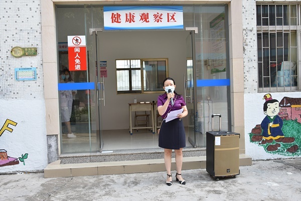 本次演練,項目包括師生正確佩戴口罩入校,校門口分流測溫,發(fā)現(xiàn)體溫異常學(xué)生的處置;課堂上發(fā)現(xiàn)學(xué)生有咳嗽、體溫超過37.3度等異?,F(xiàn)象時的應(yīng)急處置等項目。返校時,一旦發(fā)現(xiàn)學(xué)生發(fā)燒,將立刻送到健康觀察室,由保健老師進行復(fù)檢,將情況通知家長并上報橫欄醫(yī)院和疾控中心。如果課堂上學(xué)生出現(xiàn)發(fā)燒、咳嗽等癥狀時,任課老師將嚴格依照上報流程進行處理。最后,橫欄鎮(zhèn)第二小學(xué)衛(wèi)生副校長、橫欄醫(yī)院疾控科主任何波為本次復(fù)學(xué)演練進行總結(jié)。何主任強調(diào)入校門發(fā)現(xiàn)學(xué)生體溫異常需與家長聯(lián)系,再次確認三史情況,報告家長學(xué)生情況后撥打120送醫(yī)院;課堂發(fā)現(xiàn)學(xué)生體溫異常,帶學(xué)生出課室門口需再次進行手消毒,加戴一次性外科口罩,保健醫(yī)生要穿隔離服;學(xué)生送醫(yī)后,觀察室需要使用紫外線嚴格消毒。