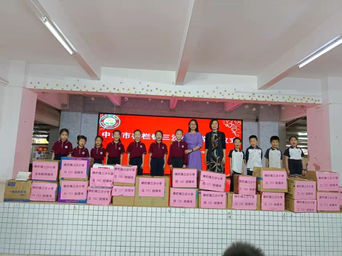 開(kāi)展活動(dòng)前,先由黃燕芬副校長(zhǎng)向全校師生宣讀愛(ài)心捐贈(zèng)倡議書(shū)。緊接著,全體老師在馮紅燕校長(zhǎng)的帶領(lǐng)下開(kāi)始了本次的捐贈(zèng)活動(dòng)。老師們積極地進(jìn)行了捐書(shū),紛紛獻(xiàn)出自己的愛(ài)心。三沙小學(xué)的孩子們更是熱情高漲,在各班班主任的組織下,三沙小學(xué)的孩子們以班級(jí)為單位,井然有序地將各自的愛(ài)心書(shū)籍捐贈(zèng)出來(lái),表達(dá)自己一份真摯的慈善之心。隨后,各班級(jí)代表和教師代表把捐贈(zèng)的圖書(shū)移至三沙小學(xué)一樓架空層,三沙小學(xué)舉行了隆重的捐書(shū)儀式。此次活動(dòng),三沙全體師生共捐出2011本書(shū)籍,匯集了科普讀物、中外名著、童話等各類書(shū)籍。同時(shí),橫欄花卉協(xié)會(huì)常務(wù)副會(huì)長(zhǎng)陳加成先生捐贈(zèng)了26盆三角梅,三沙小學(xué)家委主任吳焱申先生捐贈(zèng)了2棵蘇鐵、120盆龍船花、2個(gè)花盆、26個(gè)花碟等。他們?yōu)榫G化和美化三繞鎮(zhèn)中心小學(xué)校園奉獻(xiàn)了自己的愛(ài)心。最后,在一名社會(huì)熱心人士的幫助下,租了一輛大貨車把三沙小學(xué)所有愛(ài)心捐贈(zèng)的物資送到了三繞鎮(zhèn)中心小學(xué)。