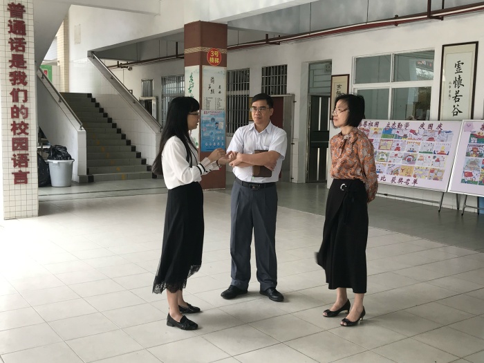 調(diào)研第二項是聽取匯報。馮紅燕校長對學(xué)校近期德育工作做了總體的匯報,同時也提出了學(xué)校所面臨的問題以及困難。黃燕芬副校長則以《以美育人》為題,圍繞學(xué)校德育工作重點和“美行”教育實際,匯報學(xué)校在師德教育、學(xué)生管理、特色社團(tuán)設(shè)置等方面的做法和效果。
