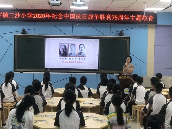 為紀(jì)念中國(guó)人民抗日戰(zhàn)爭(zhēng)勝利暨世界反法西斯戰(zhàn)爭(zhēng)勝利75周年,讓學(xué)生了解抗日歷史,教育學(xué)生勿忘國(guó)恥,珍愛和平,努力學(xué)習(xí),長(zhǎng)大后把祖國(guó)建設(shè)得更加強(qiáng)大,橫欄鎮(zhèn)三沙小學(xué)于2020年9月3日開展了以“勿忘國(guó)恥,少年當(dāng)自強(qiáng)”為主題的“校長(zhǎng)上好思政第一課”學(xué)習(xí)活動(dòng)。