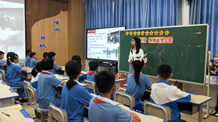 司徒嘉穎老師則匠心獨運巧妙創(chuàng)設(shè)情境,充分利用多媒體技術(shù),帶領(lǐng)同學(xué)們乘坐“富強號”列車回顧了中國百年歷史,在老師繪聲繪色的講解和國內(nèi)外、往昔多重對比之下,同學(xué)們愛國心和強國志被點燃了,或開懷暢談,或激烈辯論,深刻地明白了富強對于一個民族和國家的重要性,只有國富民強才能國泰民安。