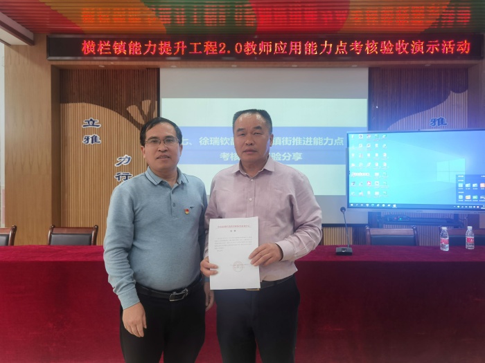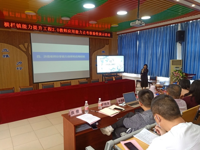 為提高橫欄鎮(zhèn)教師信息技術(shù)應(yīng)用能力,不斷推進(jìn)課堂教學(xué)與信息技術(shù)的有效融合,2022年3月10日下午,橫欄鎮(zhèn)舉行了能力提升工程2.0教師應(yīng)用能力點(diǎn)考核驗(yàn)收演示活動(dòng)。鎮(zhèn)外有關(guān)專家團(tuán)隊(duì)、橫欄鎮(zhèn)教育和體育事務(wù)中心專干、中小學(xué)校長(zhǎng)和能力提升工程2.0負(fù)責(zé)人及骨干代表參加了活動(dòng)?;顒?dòng)由橫欄鎮(zhèn)教育和體育事務(wù)中心專干王春明主持。