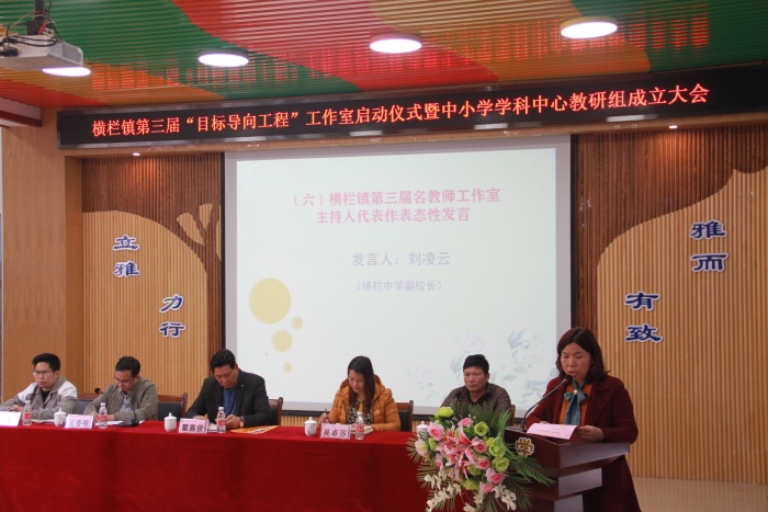 橫欄鎮(zhèn)第三屆名教師工作室主持人代表橫欄中學(xué)副校長劉凌云也作了表態(tài)性發(fā)言。劉凌云表示,作為工作室的主持人,深感責(zé)任之重大、任務(wù)之艱巨、擔(dān)子之沉重,清楚知道工作室是陣地,是機(jī)遇,是挑戰(zhàn),更是奉獻(xiàn)。劉凌云代表工作室全體成員鄭重承諾:首先要有不辱使命的意識,其次要有精誠合作、銳意進(jìn)取、敢闖敢拼的精神,用勤勞的雙手、辛勤的汗水去耕耘和澆灌工作室這塊樂土,使之成為教學(xué)研討的“集散地”、青年教師成長的“助推器”、名師培養(yǎng)的“孵化器”。