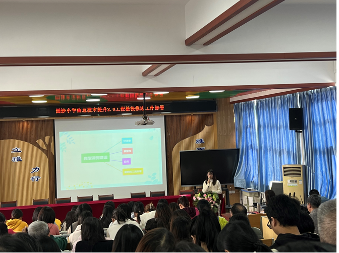 2021年12月6日中午,四沙小學(xué)在階梯室召開了信息技術(shù)提升2.0工程整校推進(jìn)工作部署會(huì)議,英語科組長(zhǎng)程麗雅以《共研共享共成長(zhǎng),奮力提升正當(dāng)時(shí)》為題作了關(guān)于典型案例建設(shè)的思考分享,教導(dǎo)主任梁洪華對(duì)學(xué)校信息技術(shù)提升2.0工程整校推進(jìn)工作進(jìn)行了部署。