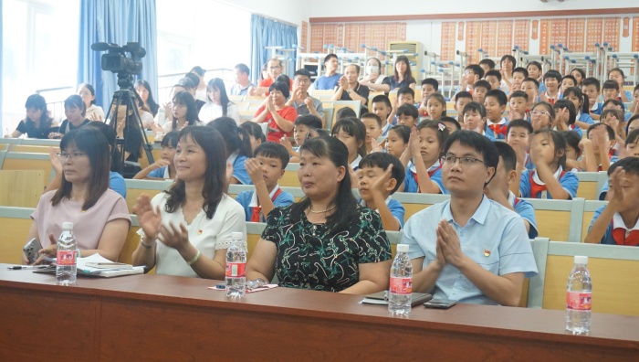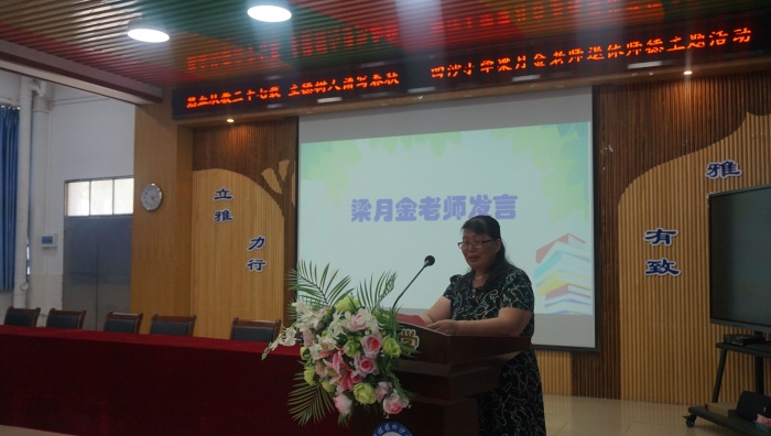 為弘揚(yáng)人民教師教書育人的高尚品格,進(jìn)一步提升教師的幸福感,增強(qiáng)教師的使命感和責(zé)任感,激發(fā)學(xué)生尊師之情,2022年7月1日下午,四沙小學(xué)舉行了“熱血從教三十七載 立德樹人譜寫春秋”梁月金老師退休師德主題活動(dòng)。活動(dòng)主會(huì)場(chǎng)在階梯室,其他班級(jí)通過釘釘直播收看。