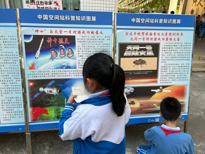活動以展覽文字、圖片和標(biāo)本等形式開展,包括中國空間站科普圖展、發(fā)明改變生活科普圖展、昆蟲標(biāo)本及圖展等。結(jié)合活動要求及場地實際,活動在該校博雅樓一樓大堂、連廊及兩側(cè)校園空地開展。