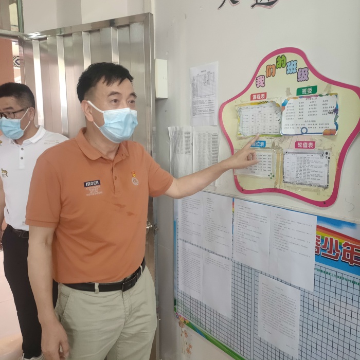 為全面貫徹黨的教育方針,落實立德樹人根本任務,強化校園疫情防控工作常態(tài)化管理,確保各個環(huán)節(jié)扎實、有序推進,5月24日下午,中山市督學袁港喜同志到大岑小學進行“規(guī)范辦學工作”“安全教育”“疫情防控”全面督導檢查。大岑小學梁慶堂校長、教務處梁轉弟主任、梁桂香副主任迎接督導檢查。