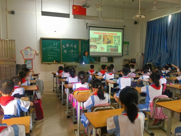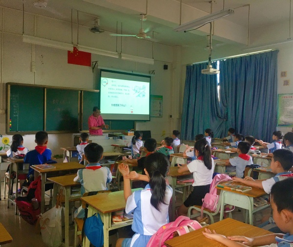 在活動(dòng)的伊始,各班授課老師先與學(xué)生進(jìn)行“感受心跳”的互動(dòng)小游戲,引導(dǎo)學(xué)生思考“生命是什么?”生命是頑強(qiáng)生長(zhǎng)的小草,是自由飛翔的雄鷹,是沉穩(wěn)的心跳,多彩的生命構(gòu)成繽紛的世界。