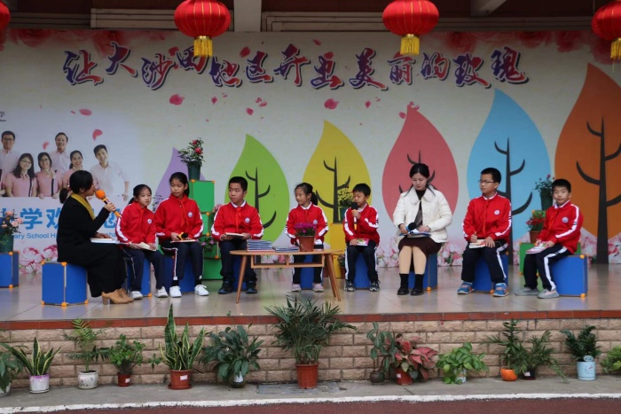 在師生共讀的環(huán)節(jié),張倩老師和崔彩園老師帶領(lǐng)了7個(gè)學(xué)生代表一同分享交流閱讀《秘密花園》的感受,師生一起分析了主要人物的性格以及他們的成長變化。孩子們也積極地去探尋他們自己內(nèi)心的秘密,成長的秘密花園。在臺(tái)上臺(tái)下互動(dòng)的環(huán)節(jié),點(diǎn)燃了本次活動(dòng)的高潮。