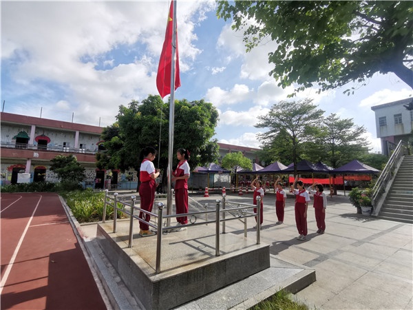 全體師生莊嚴肅穆面向國旗,國歌聲響徹校園,一只只舉起的小手,都是對祖國一份份的敬意,身為新時代的祖國花朵,應(yīng)努力學習,奮發(fā)向上,為建設(shè)祖國出一份力。