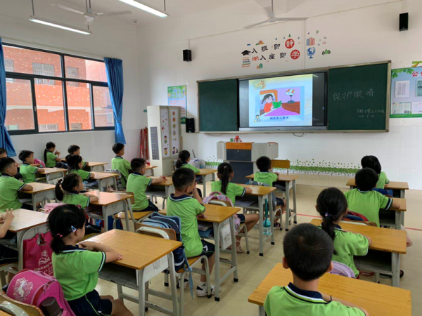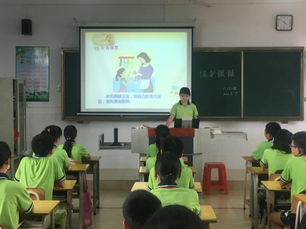 班隊活動課上,班主任們對保護眼睛的基本知識,如坐姿、看書、眼保健操等進行了示范指導,教育同學們平時要保持良好的讀、寫姿勢,少玩手機、電腦、游戲,保證充足的睡眠、合理飲食和適量的鍛煉,并糾正眼保健操的正確按壓穴位,保護視力。同時,通過形象生動的舉例說明使學生掌握科學的用眼知識,培養(yǎng)學生良好的用眼習慣。為了進一步增強學生們的愛眼護眼的意識,科學防控近視,規(guī)范矯正近視。班主任還通過播放預防近視的視頻,使學生了解近視的成因、近視的危害以及預防近視的方法等,最后,同學們也互相交流了此活動的感受。