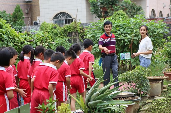 本次揭牌儀式的嘉賓為黃圃鎮(zhèn)教育和體育服務(wù)中心副主任袁港喜先生、農(nóng)場(chǎng)主即學(xué)生家長(zhǎng):羅洛怡家長(zhǎng)、郭靖然家長(zhǎng)、新地中心小學(xué)校長(zhǎng)吳國(guó)有先生、科學(xué)教師陳漸成和陳藹齡老師以及50名學(xué)生代表。首先,由袁港喜先生、吳國(guó)有校長(zhǎng)、農(nóng)場(chǎng)主、陳漸成老師進(jìn)行簡(jiǎn)單而隆重的揭牌儀式。隨后,鄧蛟龍主任針對(duì)新地中心小學(xué)勞動(dòng)教育教學(xué)計(jì)劃進(jìn)行介紹,并提出勞動(dòng)教育將進(jìn)一步在新地中心小學(xué)得到落實(shí),專設(shè)勞動(dòng)教育必修課、開展一系列勞動(dòng)主題教育活動(dòng)等。緊接著由陳漸成老師帶領(lǐng)學(xué)生代表參觀勞動(dòng)實(shí)踐基地,并進(jìn)行講解。在陳漸成老師的帶領(lǐng)下,學(xué)生嘗試如何拔草,知道如何制作以果蔬等廚余垃圾為原材料的肥料,了解粉葛的生長(zhǎng)周期,對(duì)比韭菜與蔥的區(qū)別,體驗(yàn)勞動(dòng)實(shí)踐的樂趣??鞓返臅r(shí)光總是短暫的,學(xué)生們依依不舍的離開勞動(dòng)基地,期待再一次的到來(lái)。