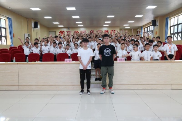最后是學(xué)生自由提問環(huán)節(jié)。同學(xué)們積極踴躍地提出自己的問題,兩位校友進行解答。輕松的氛圍和有趣的問題,一下拉近了同學(xué)們和校友的距離?;顒咏Y(jié)束后,同學(xué)們依依不舍地離開,有的同學(xué)還親切地與兩位校友握手、告別,并表示要向兩位優(yōu)秀的哥哥學(xué)習(xí),成為一名有理想、有道德的社會主義建設(shè)者和接班人。