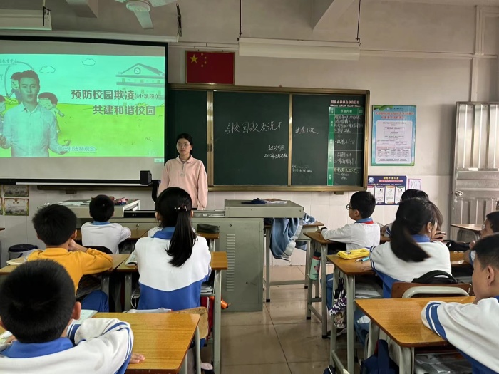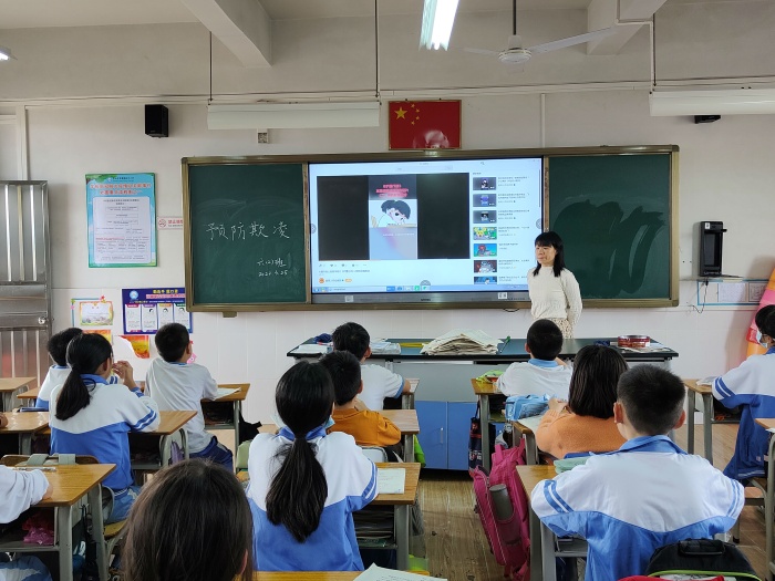 為防止校園欺凌事件的發(fā)生,進(jìn)一步構(gòu)建平安和諧校園,增強(qiáng)學(xué)生的法制知識(shí),預(yù)防校園暴力事件,提高同學(xué)們的安全防范意識(shí)和自我保護(hù)能力。3月25日下午,黃圃鎮(zhèn)新沙小學(xué)開(kāi)展了以“與校園欺凌說(shuō)‘不’!”為主題的班會(huì)活動(dòng)。