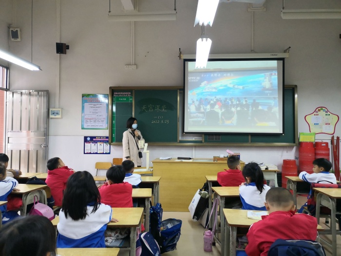 2022年3月23日下午,“天宮課堂”第二課在中國空間站開講,神舟十三號乘組航天員翟志剛、王亞平、葉光富相互配合進(jìn)行授課,中央廣播電視總臺面向全球進(jìn)行現(xiàn)場直播。為了激發(fā)學(xué)生不斷追求“科學(xué)夢”“航天夢”的熱情,為了培養(yǎng)學(xué)生探索科學(xué)知識的興趣,中山市黃圃鎮(zhèn)新沙小學(xué)特地組織全校學(xué)生在課室內(nèi)觀看了當(dāng)天的直播課。