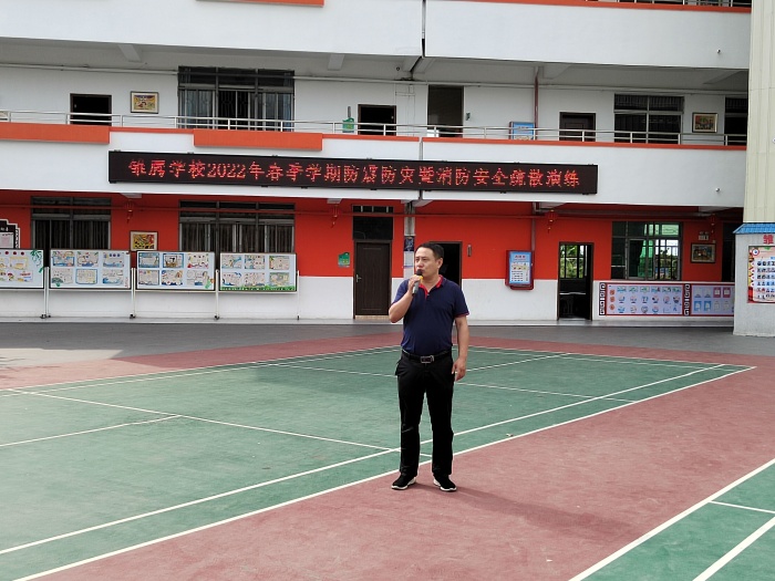上午9時,隨著警報聲的響起,消防安全應(yīng)急疏散演練正式開始。各班班主任老師迅速到達各班協(xié)助上課老師一起組織學(xué)生疏散,其他老師們也在第一時間趕到自己當時所在樓層拐角處配合疏散學(xué)生。各班學(xué)生在老師們的指揮下,彎著腰,貓著步,用手帕、毛巾等捂住口鼻,沿著學(xué)校指定樓梯口快速前進,有序撤離到學(xué)校操場的安全地帶,耗時2分多鐘。隨著各班班主任清點人數(shù),并層層上報,全校1000余名師生全部安全疏散完畢。隨后,安全處黃字由主任對此次消防應(yīng)急疏散演練活動進行了點評,表揚了在演練活動中做得好的班級,并強調(diào)一旦身邊發(fā)生突發(fā)事件,要沉著應(yīng)對,做好及時報告和安全逃生工作,有效掌握在危險環(huán)境中迅速逃生、自救、互救的基本方法,切實提高抵御和應(yīng)對緊急突發(fā)事件的能力。最后,雛鷹學(xué)校張華校長對本次活動進行了細致的總結(jié),希望全體師生以這次演練為契機,繼續(xù)牢固樹立防火安全意識,不斷學(xué)習(xí)防火安全知識,要防患于未然,共建平安校園。