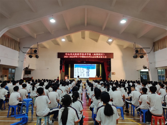 為提高宿舍文化活動(dòng)“以評(píng)促建”的實(shí)效性,2022年6月29日傍晚,中山市火炬科學(xué)技術(shù)學(xué)校(南朗校區(qū))2021-2022學(xué)年第二學(xué)期“‘寢’有獨(dú)鐘,‘宿’說文明”宿舍評(píng)比活動(dòng)總結(jié)暨表彰大會(huì)在紫荊堂如期舉行。學(xué)校德育處副主任袁建、宿舍管理員丁元、生活老師王光華以及全體住宿生共計(jì)330余人參加了此次活動(dòng)。