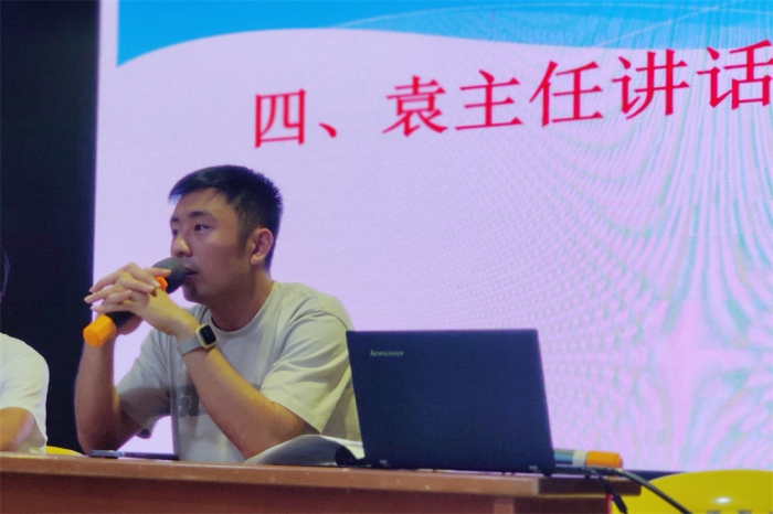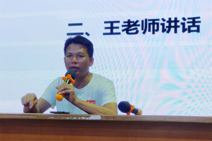 會(huì)議第二項(xiàng),生活老師王光華向大家分享了文明宿舍創(chuàng)建的秘訣和方法,分享了自己在與同學(xué)們共同生活的點(diǎn)滴故事,回憶美好、詮釋擔(dān)當(dāng)、傳遞力量,同時(shí)希望各位宿舍生以樣板宿舍為榜樣,向榜樣學(xué)習(xí),向榜樣看齊。