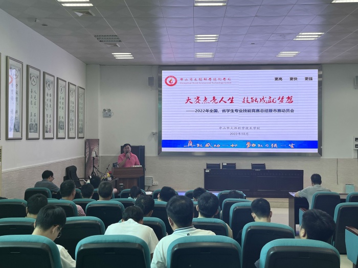 實踐鍛煉能力,比賽彰顯才智。為了進一步提高技能競賽整體水平,2022年10月21日下午,中山市火炬科學技術學校在開發(fā)區(qū)校區(qū)報告廳舉辦2022年全國、省學生專業(yè)技能競賽總結暨市賽動員會。出席會議的人員有陳建國校長、王劍勤副校長、教務處黃俊主任、張道輝副主任以及全體競賽指導教師。此次會議由張道輝副主任主持。