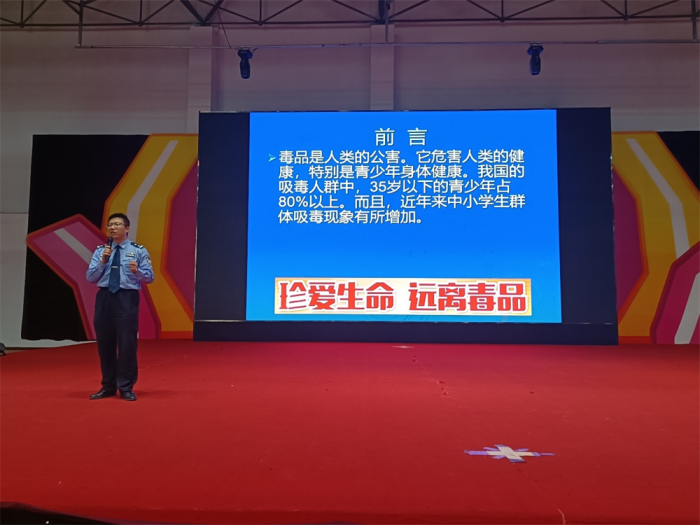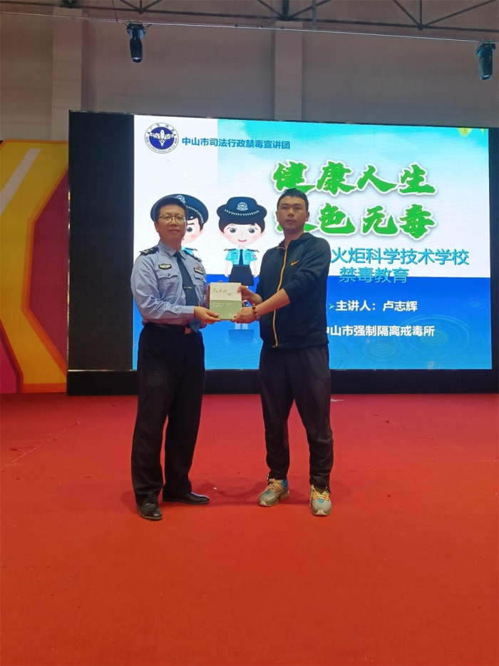 學(xué)校是毒品預(yù)防教育的主陣地,學(xué)生是青少年毒品預(yù)防教育的重中之重。為了讓學(xué)生們充分了解毒品危害及禁毒方面的知識(shí),3月9日,中山市火炬科學(xué)技術(shù)學(xué)校聯(lián)合中山市強(qiáng)制隔離戒毒所開展禁毒講座,邀請(qǐng)了中山市強(qiáng)制隔離戒毒所代表盧志輝警官為師生代表作禁毒第一課宣講。盧志輝警官從專業(yè)的角度,以通俗易懂、圖文并茂的形式,通過生動(dòng)鮮活的案例和視頻,深入分析青少年吸毒的原因,向同學(xué)們?cè)敿?xì)介紹了毒品的種類,講解了毒品的危害、青少年如何遠(yuǎn)離毒品、如何識(shí)別毒品等知識(shí),讓同學(xué)們樹立“珍愛生命,遠(yuǎn)離毒品”的觀念,杜絕毒品侵害,筑牢校園“防毒墻”。盧志輝警官還帶領(lǐng)同學(xué)們一起宣誓:學(xué)會(huì)拒絕毒品,建設(shè)無毒校園!堅(jiān)決與毒品作斗爭!從我做起以抵制毒品為榮,以吸毒販毒為恥! 潔身自愛,決不沾毒!最后,盧志輝警官代表戒毒所,向?qū)W校捐贈(zèng)禁毒圖書,給全校師生帶來了寶貴的禁毒知識(shí)。