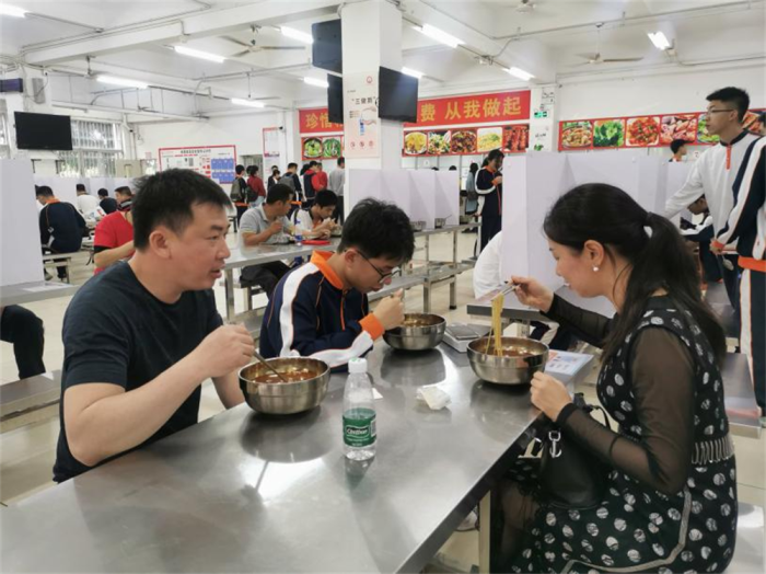 會后,家長在學(xué)生的帶領(lǐng)下參觀了校園。先進(jìn)的實(shí)習(xí)實(shí)訓(xùn)設(shè)備,整齊規(guī)范的校園環(huán)境,寬敞明亮的宿舍環(huán)境讓家長倍感欣慰,并對學(xué)校辦學(xué)特色有了更深入的了解。許多家長來到學(xué)校的食堂,陪伴孩子一起用餐。