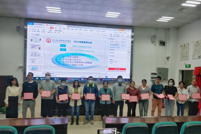第一階段,學(xué)校德育處凌杏絲主任以《家校合力,共育花開》為主題,向與會家長介紹了學(xué)校的基本情況,重點(diǎn)介紹學(xué)校的德育管理工作、辦學(xué)業(yè)績,以及孩子們?nèi)雽W(xué)以來在行為習(xí)慣養(yǎng)成、專業(yè)課程學(xué)習(xí)、遵守校規(guī)校紀(jì)等方面的變化和進(jìn)步。隨后,組織全體家長一起學(xué)習(xí)《廣東省中小學(xué)家庭教育親子溝通指引》,分享了父母與孩子溝通的有效方法,引導(dǎo)家長建立正向積極的家庭關(guān)系,營造良好的家庭氛圍,助力孩子保持健康積極的學(xué)習(xí)心態(tài)。并向家長提出幾點(diǎn)建議:1.多些親子陪伴,盡可能給孩子創(chuàng)造一個積極向上、和諧輕松的家庭環(huán)境;2.多關(guān)注孩子的安全,關(guān)注他們的交友情況,加強(qiáng)孩子的青春期教育和引導(dǎo);3.多關(guān)注孩子的情緒和心理健康,及時進(jìn)行疏導(dǎo)。4.多給孩子鼓勵與支持,常與老師聯(lián)系,多給孩子一點(diǎn)信心,了解孩子在學(xué)校的情況,做孩子成長強(qiáng)有力的后盾。