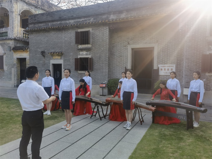 學(xué)校德育處、團(tuán)委組織合唱隊(duì)、舞蹈隊(duì)以及古箏社團(tuán)的同學(xué),在張浩東、李賽花、楊漢光老師的帶領(lǐng)下,來(lái)到了楊殷故居,開(kāi)展了一場(chǎng)融情入景的花下音樂(lè)會(huì)。通過(guò)古箏合奏、舞蹈表演、合唱等形式,演繹了《我的祖國(guó)》《星星之火》《我愛(ài)你!中國(guó)》等經(jīng)典音樂(lè)作品,以詩(shī)意的方式緬懷楊殷烈士,致敬革命先烈。