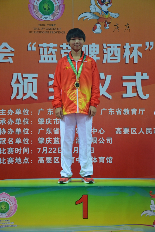 跆拳道女甲59-66KG金牌:程秋容 帶訓(xùn)教練:劉偉平 輸送鎮(zhèn)區(qū):東升