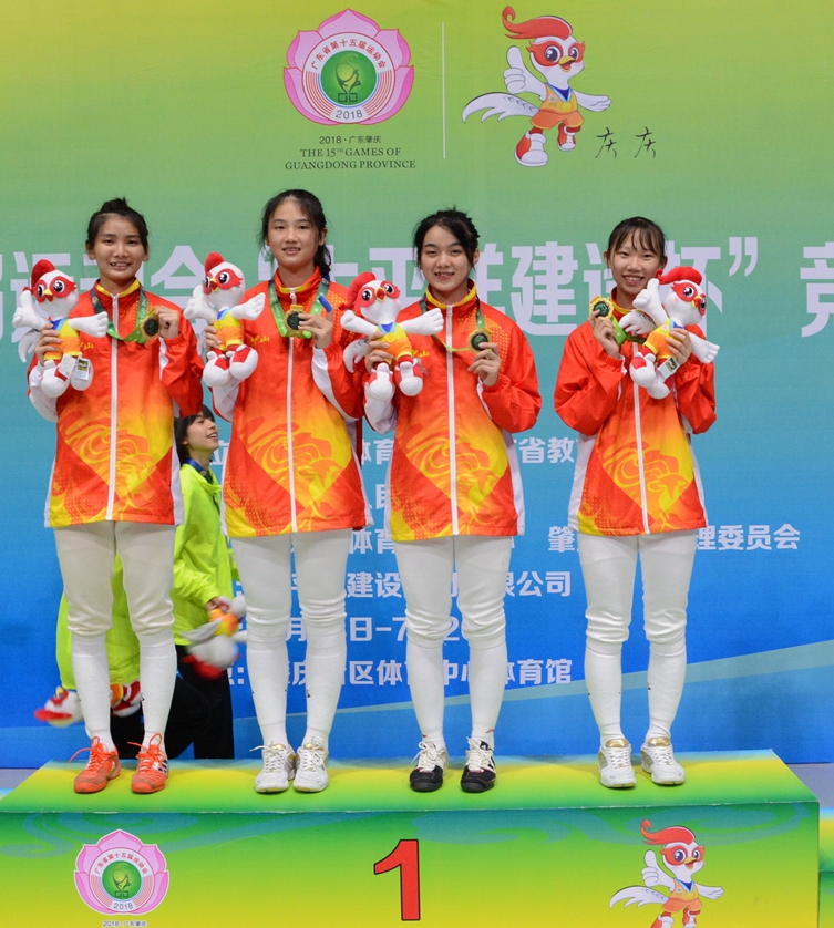 花劍女甲團(tuán)體金牌:黃美玲(古鎮(zhèn))、林靜(南區(qū))、林玉淇(西區(qū))、譚海欣(南朗)帶訓(xùn)教練:譚社炯
