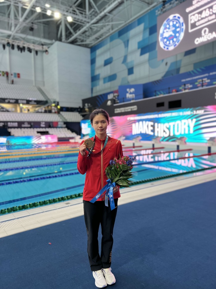 在2022年FINA國(guó)際泳聯(lián)世錦賽29日的比賽中,中山體校培養(yǎng)并輸送的跳水運(yùn)動(dòng)員林珊代表中國(guó)隊(duì)出戰(zhàn)。林珊搭檔朱子鋒配合默契,發(fā)揮出色,最終以324.15分奪得跳水項(xiàng)目混雙3米板冠軍,這是林珊繼上屆世錦賽混合全能項(xiàng)目奪冠后,第二次摘得世錦賽金牌。