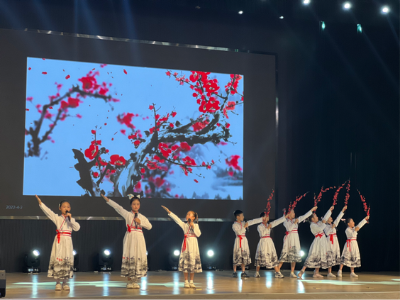 悠悠書香促成長(zhǎng),一二三年級(jí)學(xué)生通過吟誦《梅花夢(mèng)》《雪月梅花》《梅花頌》《梅花吟》等一首首經(jīng)典詩詞,稚嫩童聲,聲聲入耳,句句繞梁,跨歷史長(zhǎng)河,越千年歲月,賞音律之美,悟梅花精神,養(yǎng)君子之風(fēng)。