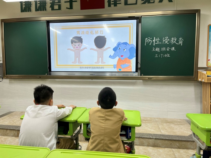 班會(huì)課上,各班紛紛觀看了中小學(xué)校安全教育平臺(tái)中的防性侵專題教育視頻,為孩子們呈現(xiàn)了這堂意義頗深的一課。視頻通過生動(dòng)形象的動(dòng)畫,以大象老師向小朋友們講解知識(shí)的形式來展開。大象老師通過播放視頻、展示圖片、解說及互動(dòng)交流等形式向孩子們傳授預(yù)防性侵犯的知識(shí)。讓學(xué)生知道身體的哪些部位是隱私部位,從而建立起隱私的概念,并學(xué)會(huì)如何保護(hù)自己和尊重他人的隱私部位等。相信這節(jié)特殊的班會(huì)課一定給孩子們留下了深刻的印象,他們?cè)谶@節(jié)課明白了:對(duì)于不當(dāng)或不舒服的身體接觸,要勇敢說不,要保護(hù)好自己的隱私部位,同時(shí)不要輕易接受陌生人或者他人的飲料和食品,路上要結(jié)伴而行,不要到四周沒人的地方去,牢記父母電話及報(bào)警電話110。