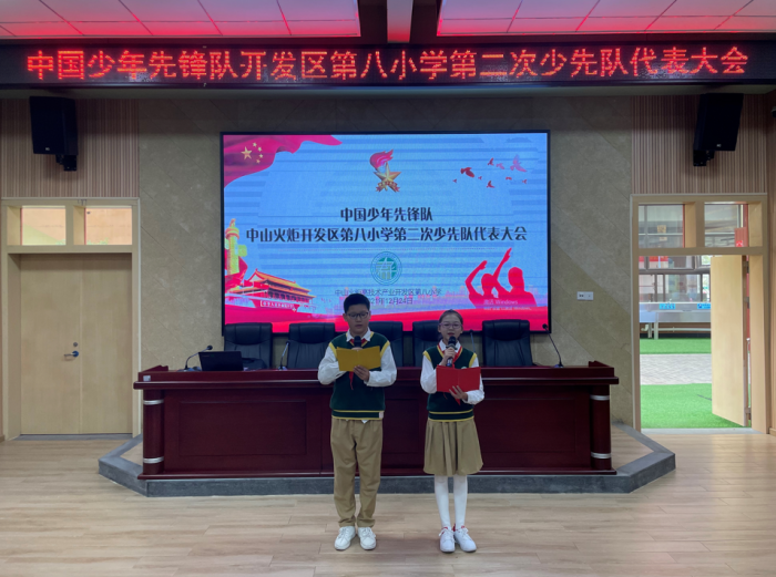 為深入貫徹落實習近平總書記關于少先隊工作的重要論述和全國第八次少代會精神,進一步加強學校少先隊的組織建設,增強少先隊員的光榮感和歸屬感,12月24日下午,開發(fā)區(qū)第八小學少工委在學校報告廳隆重召開“請黨放心 強國有我”——火炬八小第二次少先隊代表大會。