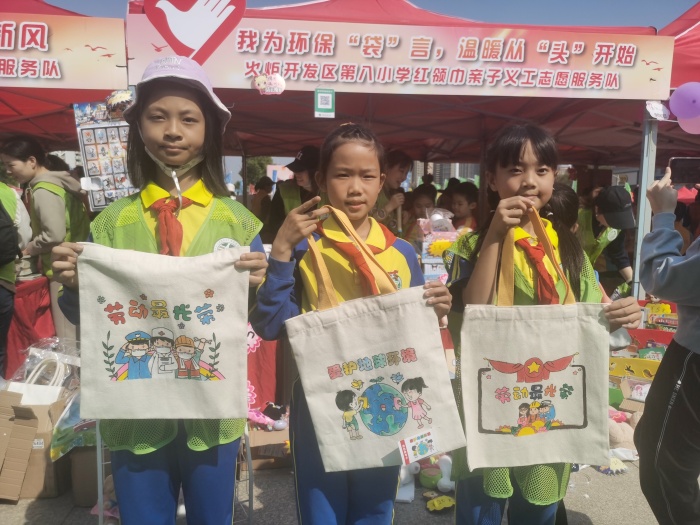 本次活動,火炬八小組織了一支三十多人的“紅領巾”親子義工團隊。義工們根據(jù)活動內(nèi)容要求,結(jié)合八小“君子文化教育”理念,確定了“我為環(huán)保袋言,溫暖從頭開始”為主題的義賣宣傳活動。