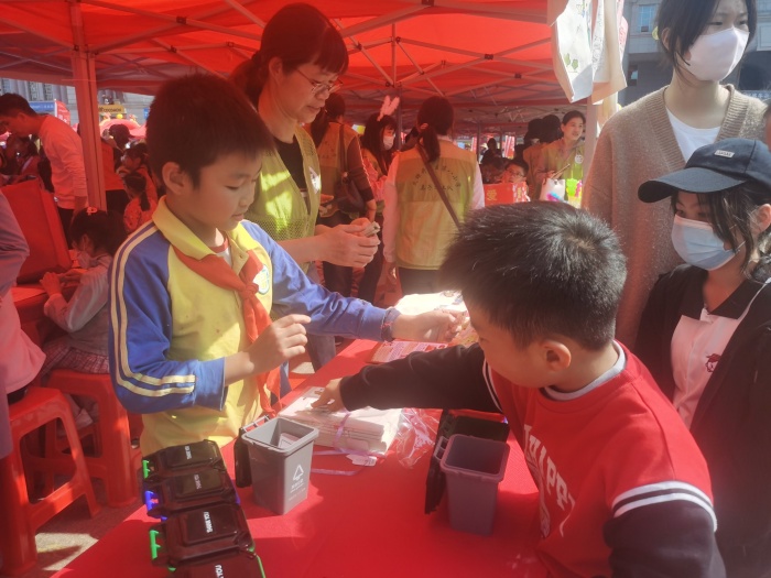 活動現(xiàn)場,人頭攢動,老師、義工、同學們分工明確,有條不紊地張羅布置著義賣區(qū)域,義賣現(xiàn)場十分熱鬧。據(jù)了解,火炬八小紅領巾親子義工隊現(xiàn)場開展“垃圾分類有獎小游戲”和“彩繪環(huán)保購物袋”活動,吸引了許多家長和學生前來參加。結(jié)合學雷鋒月主題,義工家長們利用自身的職業(yè)優(yōu)勢,還同時進行義剪、義診活動,深受群眾好評。